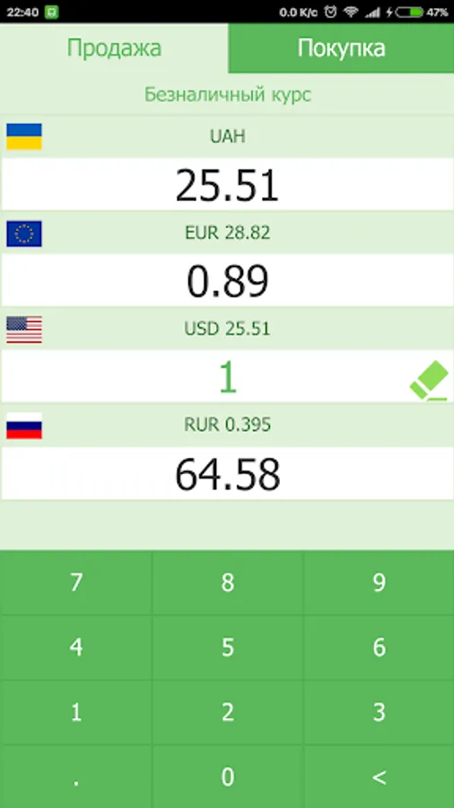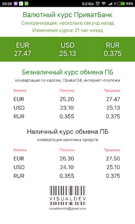 Learn cashless and cash currency exchange rate in Privatbank today! Always on your smartphone or tablet in the online mode, the dollar exchange rates, the euro and the ruble, as well as a convenient converter, allowing you to quickly count the currency! With the app you can instantly get information about the cash exchange rate and currency exchange rate on the cards of PrivatBank.