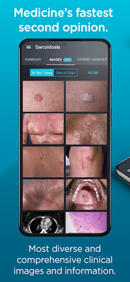 • Engage with patients by sharing pictures of skin that reflect their disease presentation because VisualDx has been building the most diverse set of images, including dark skin dermatology, for more than 20 years.