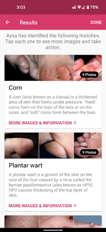 Your skin is unique; skin conditions can look different from person to person. Aysa is built on the resources of VisualDx, the award-winning clinical decision support software focused on equity in medicine for over 20 years. Its curated library of more than 120,000 medical images includes every skin color and type, and what each of 200 skin conditions can look like at every stage. The workflow even allows you to select skin color, ensuring the best information and images possible.