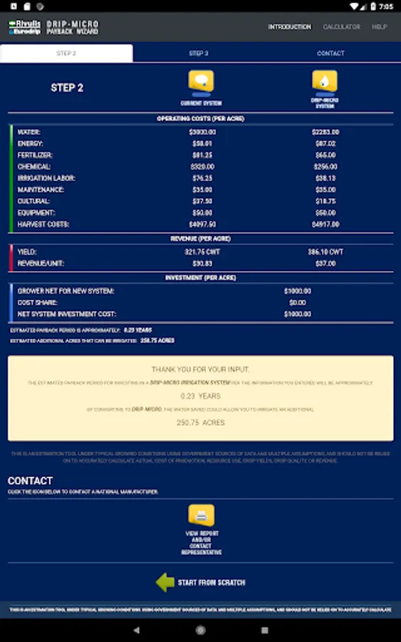 4 - Print your report and contact a national drip-micro manufacturer for further assistance