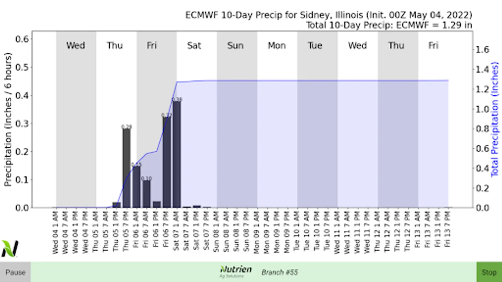 Nutrien Ag Solutions Agronomy 1st TV App delivers relevant Ag weather data to the branch for display on a TV
