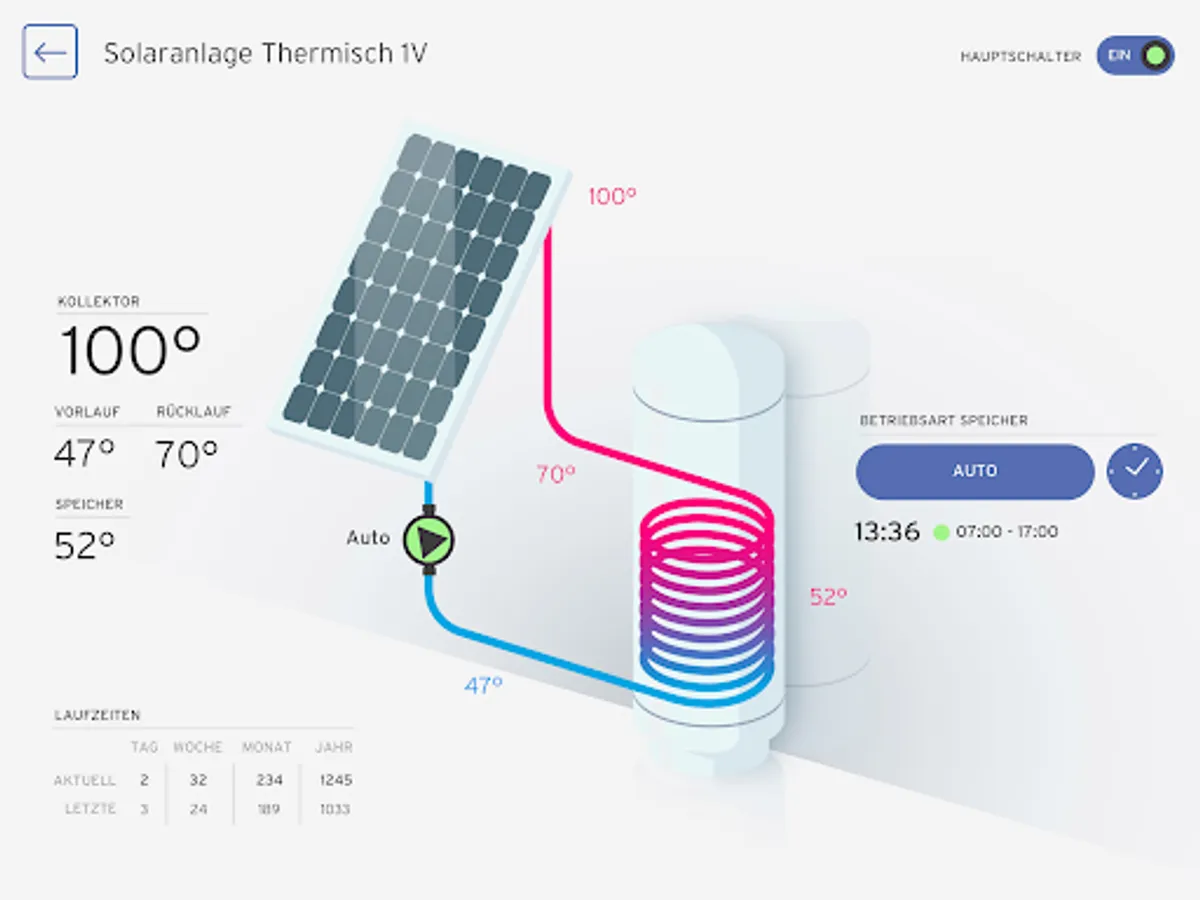 With the GEOSOL CONTROL you can control your control with your smartphone and tablet from anywhere in the world.