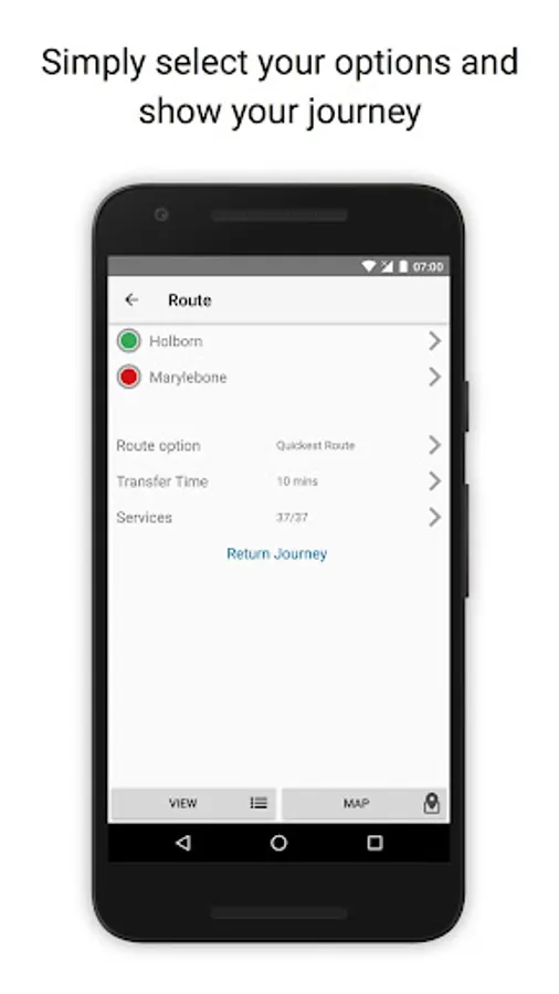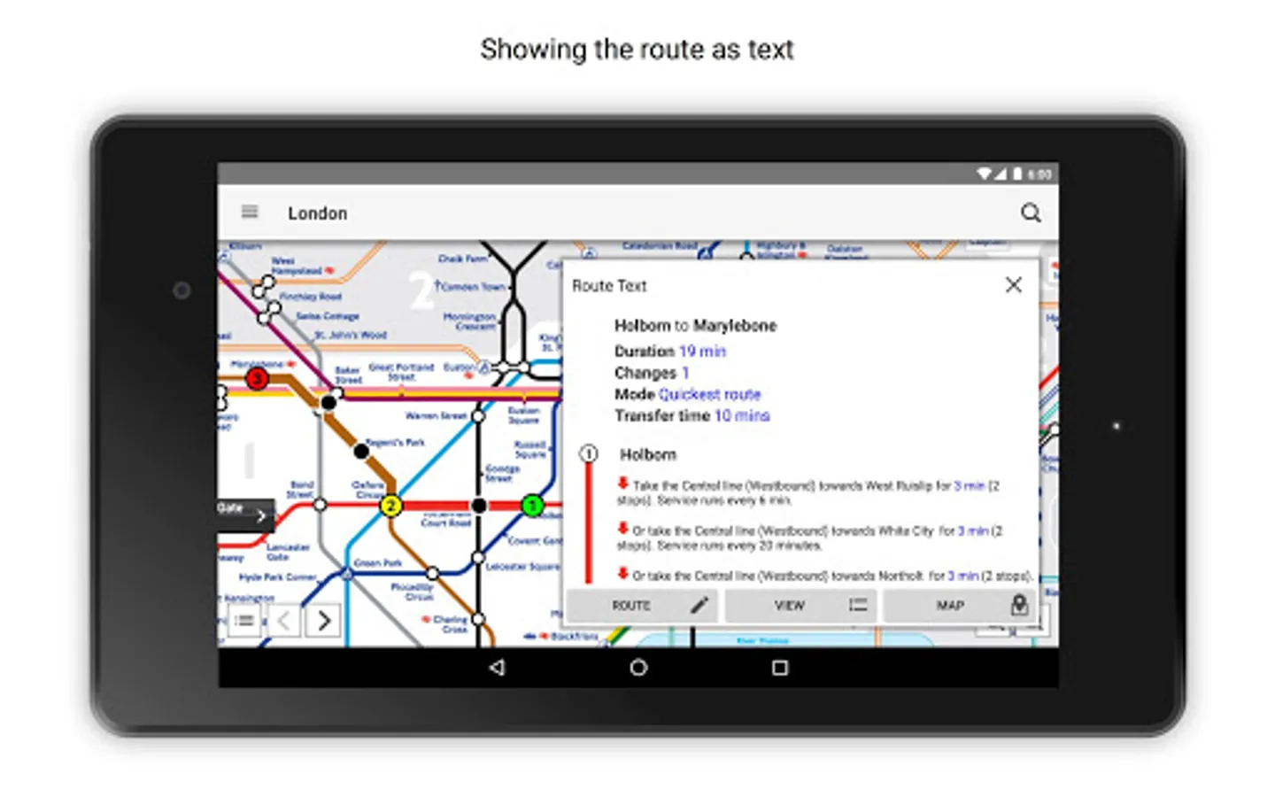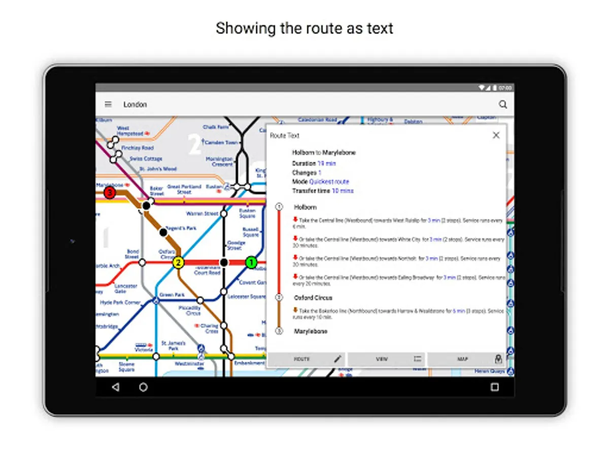 Comprehensive details of your planned route are provided, including changes, directions of travel, number of stops, predicted journey times, etc. Uniquely this application gives you “direction”, “towards” and “service frequency” information (not available on any other offline journey planner) for example “Take the Northern line (Southbound) towards Stockwell for 10 mins (6 stops). Service runs every 7 minutes” which is essential when finding the correct platform and connection. Also given are alternatives for each leg of the journey.