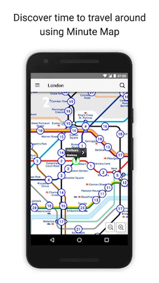 ● MINUTE MAP ● This unique feature provides a view of travel times from any location on the map. This is helpful for getting a sense of scale and connectivity of the transport system and can provide some interesting results.