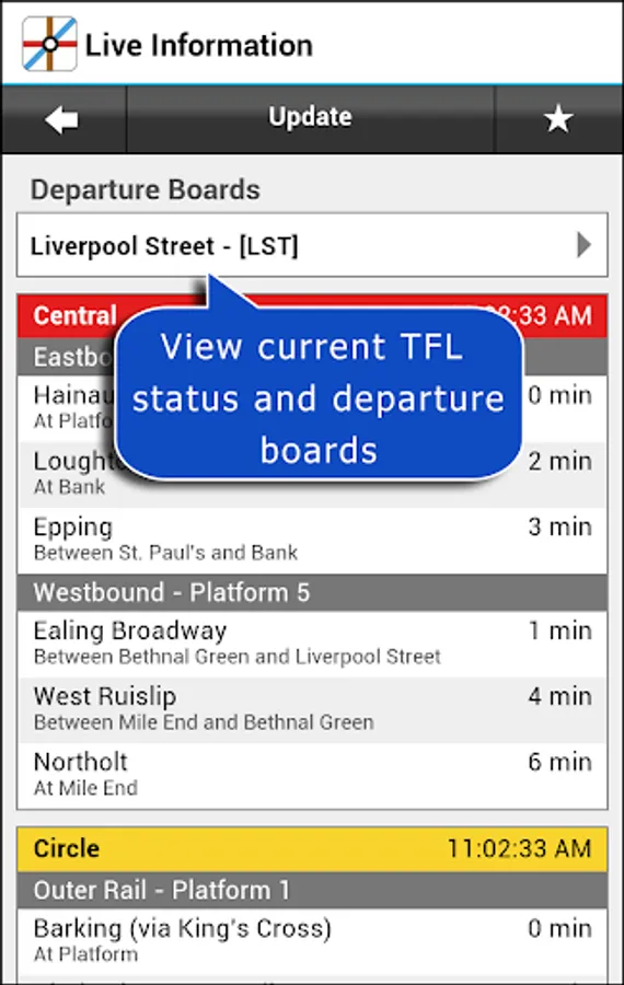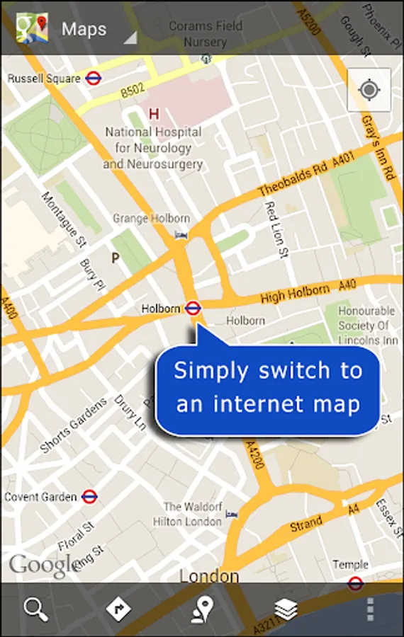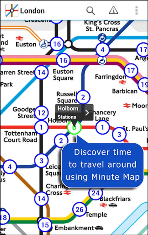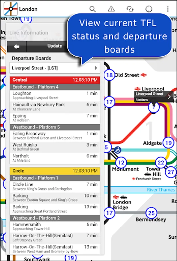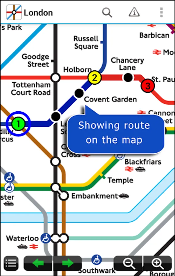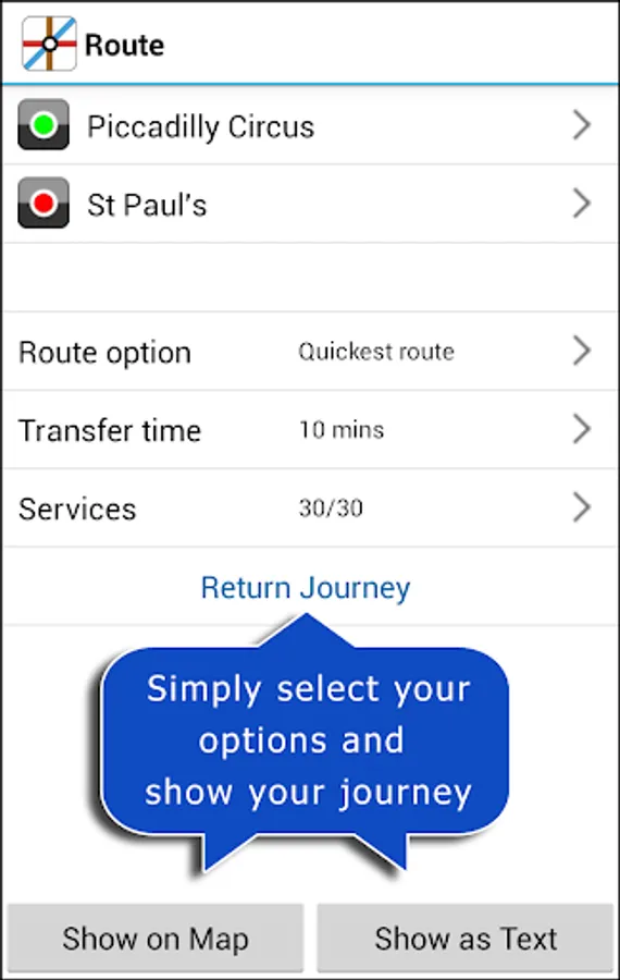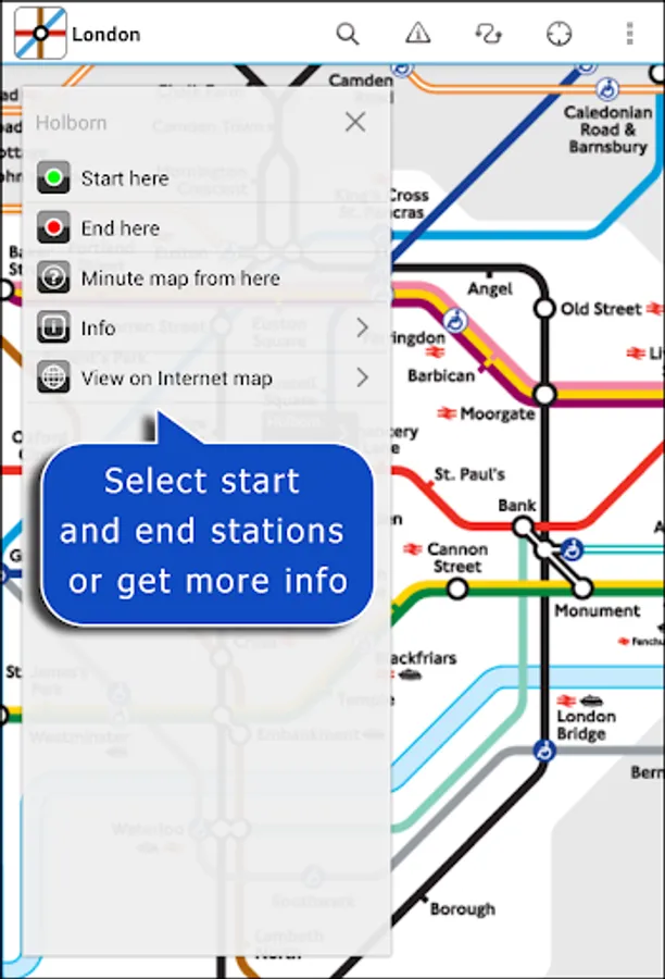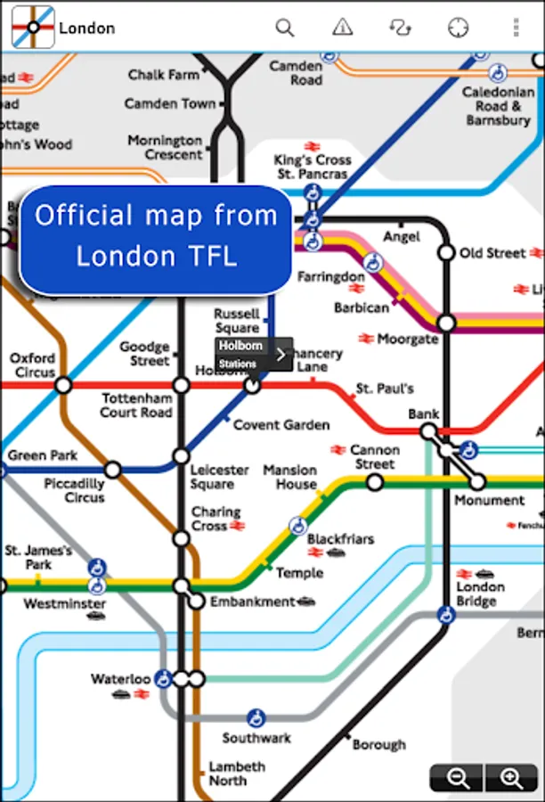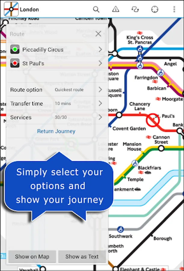 ● OVERVIEW ● The London Underground application is a superb route planner for the London Underground (Tube)system with many unique features. The inbuilt map provides the official TFL map of the city underground services with the ability to switch to an online street map view when an internet connection is available. This way the user can view the online map feature when above ground and the transport map and route planning is still fully functional underground or anywhere there is no internet connection. This provides the best of both worlds, the transport map and route planning anytime, anywhere and online street maps and search when a connection is available.