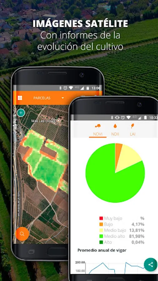With the help of VISUAL, the growth and behavior of the plantations can be evaluated in the face of various factors such as diseases, drought conditions, the presence of contaminating elements or the absence of fertilizers.