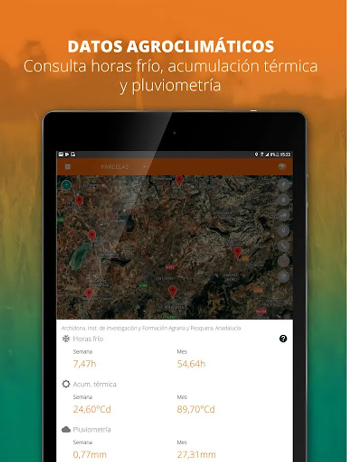 You can import information (ERP, Excel spreadsheets, monitoring devices and sensors, satellite images, drones, aerial photos). In addition, it is possible to consult external sources (real-time climatological data and historical data, map of plots with the reference SIGPAC, Cadastre or Google).