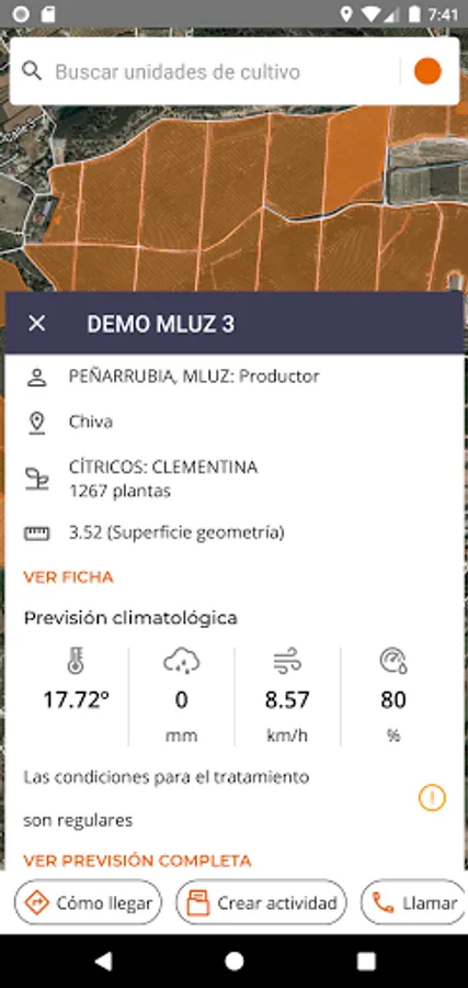Information can be imported (ERP, Excel spreadsheets, monitoring devices and sensors, satellite images, drones, aerial photos). In addition, it is possible to consult external sources (weather data in real time and historical data, parcel map with the SIGPAC, Cadastre or Google reference).