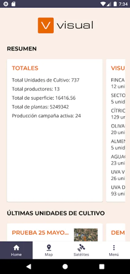 VISUAL APP is intelligent technology based on interactive maps that allows efficient and profitable planning of field activities (sowing, harvesting, irrigation, quality control, fertilization, monitoring of phenological states, pest control treatments, among others).
