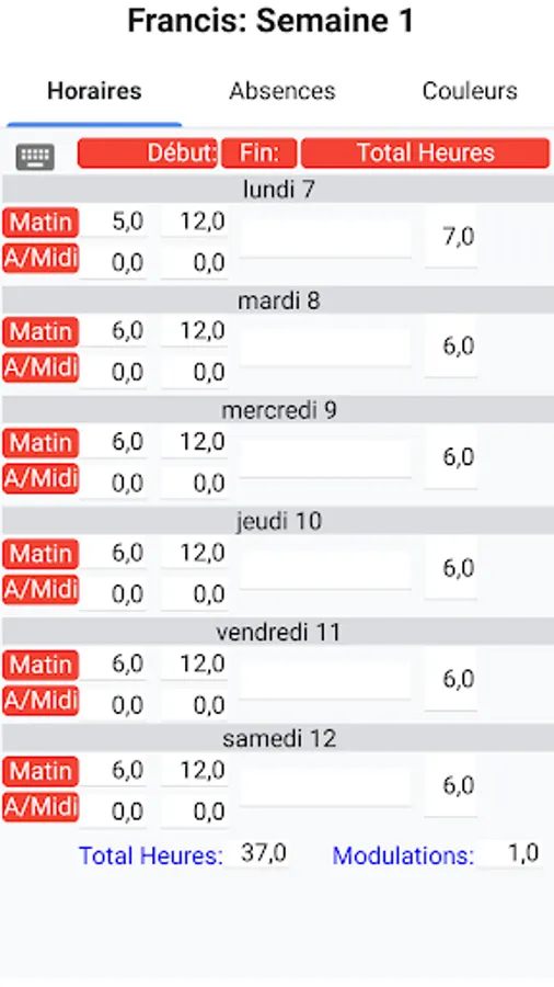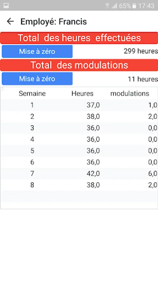 This smartphone version manages the modulations and the total hours worked during the year.