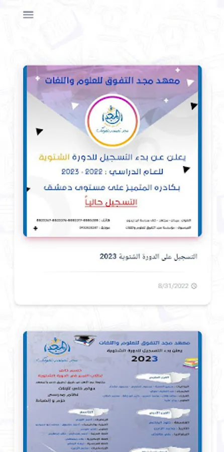 By installing the application, you will be the first to know about the opening of a new course at the institute, as the application sends new notifications when a course opens, do not miss this
