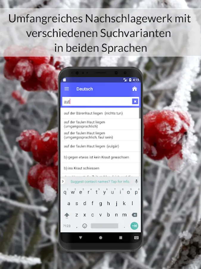 This app is suitable for people who just have fun with the language, want to search for phrases or know what a phrase or a saying in the other language.