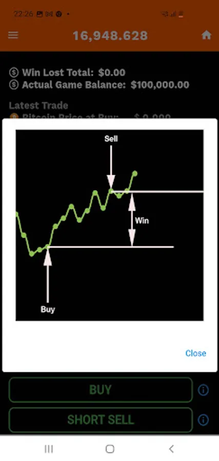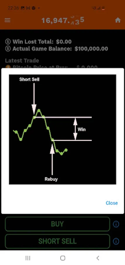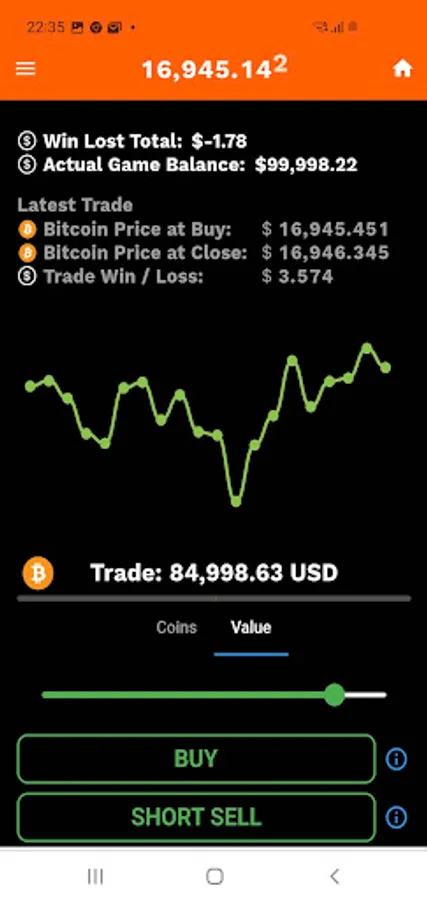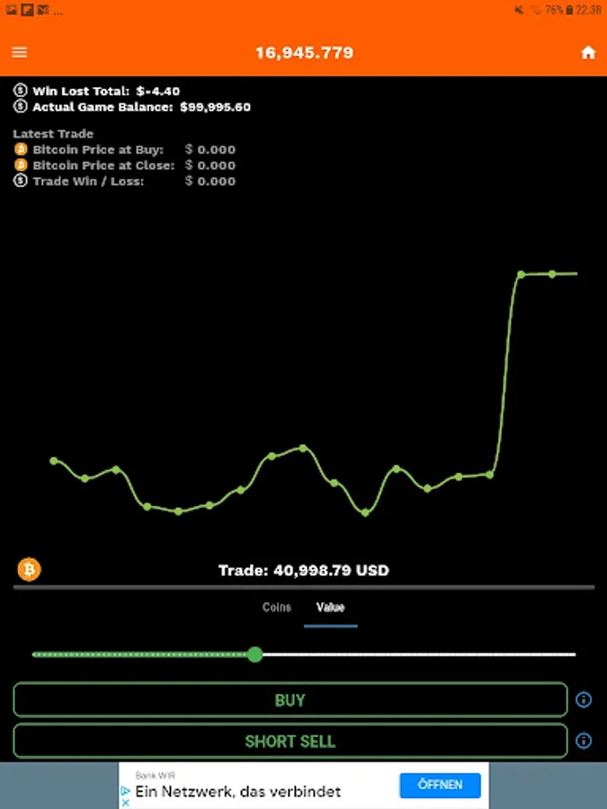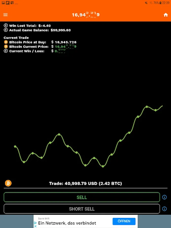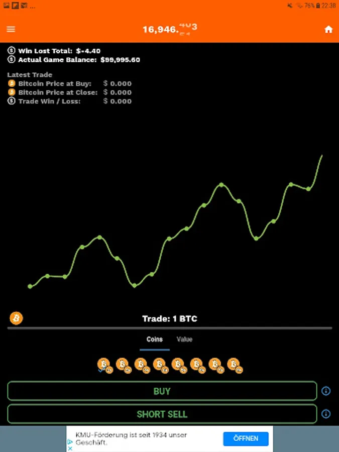 Imagine you are a Bitcoin Trader. Do your prediction, if the BTC price will rise or fall and do you’re your trades. Click Buy or Short Sell and see if your forecast was right.