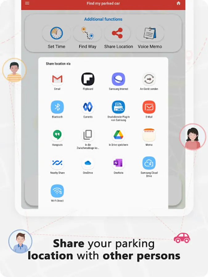 the passengers can find their way back to the car. The passengers do not need to install the app.