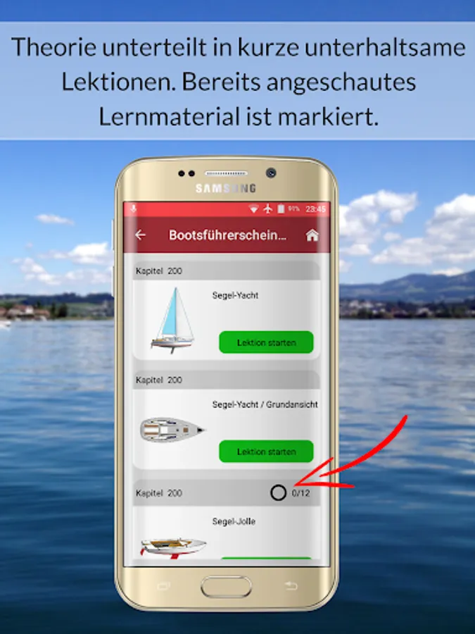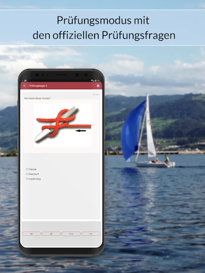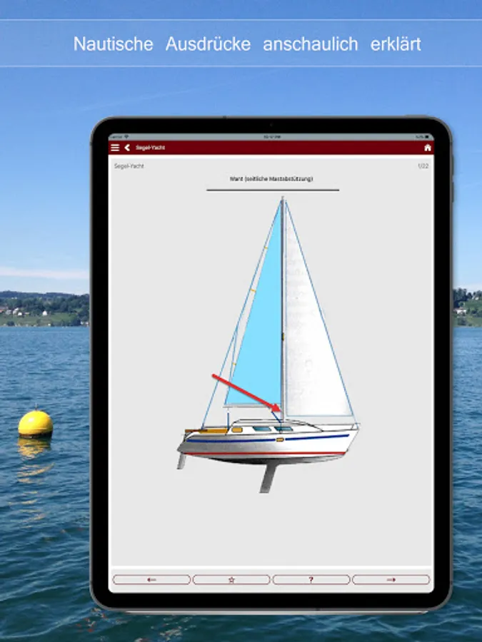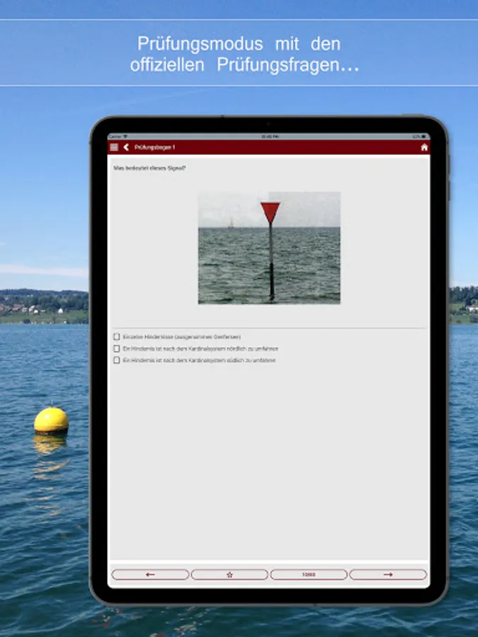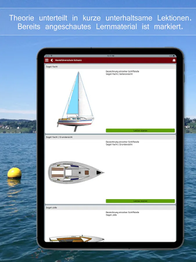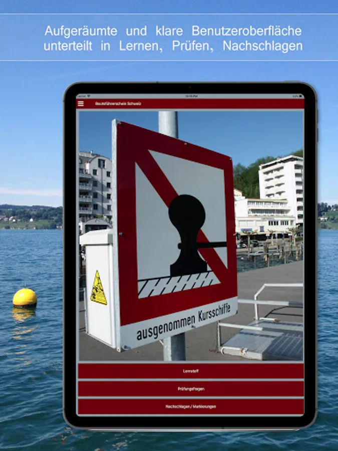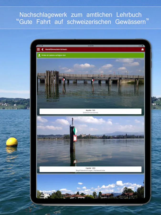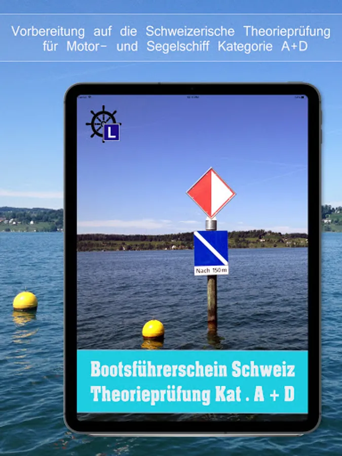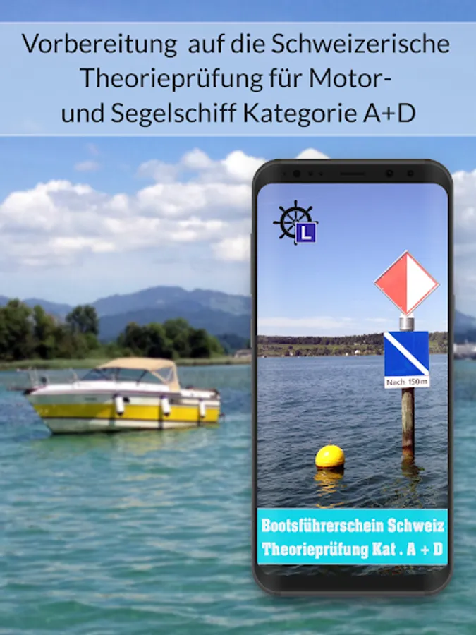 Lernapp for the preparation for the theory test for boat motor and sailing ship cat. A and D with the official and latest exam questions, as well as the complete reference book "Have a good trip on Swiss waters".