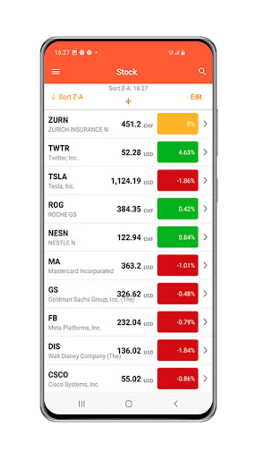 Tap a stock to see the chart and details