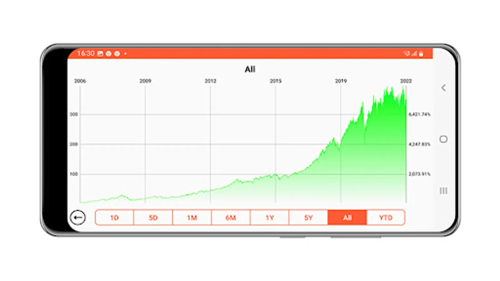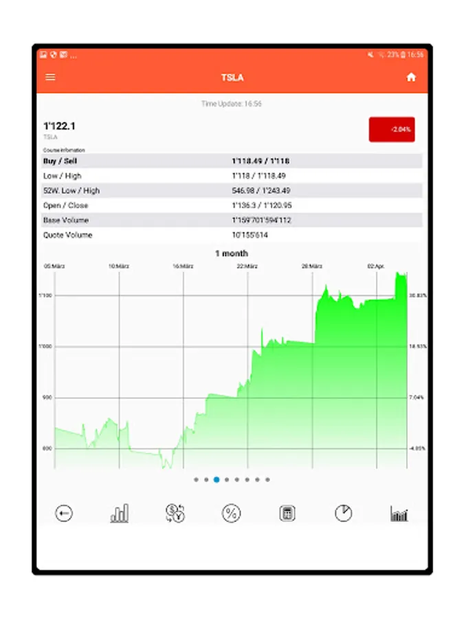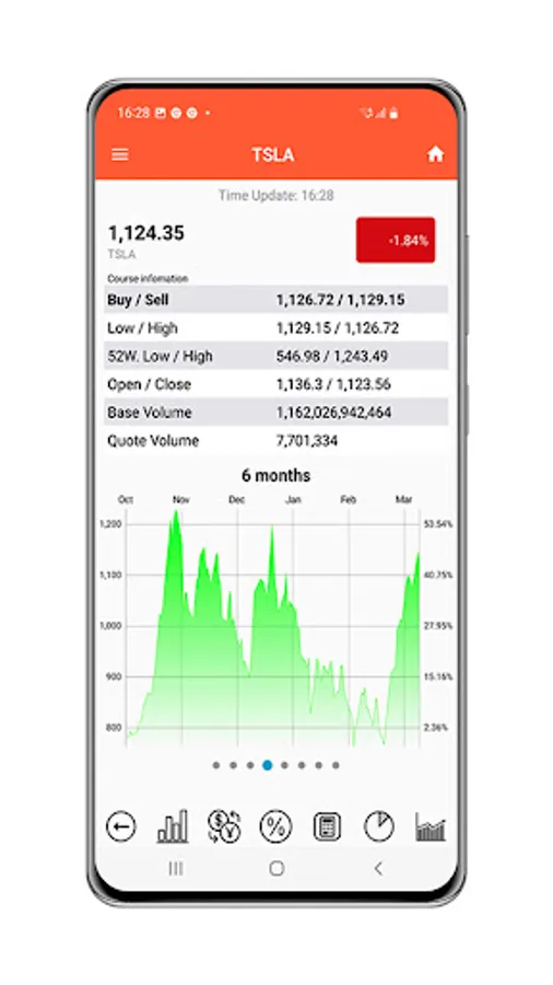 Tap a stock and see an interactive chart and key details.