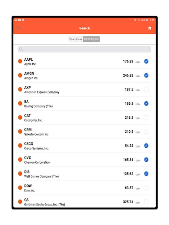 Follow the stocks you care about by searching of the ticker and tapping the check icon.