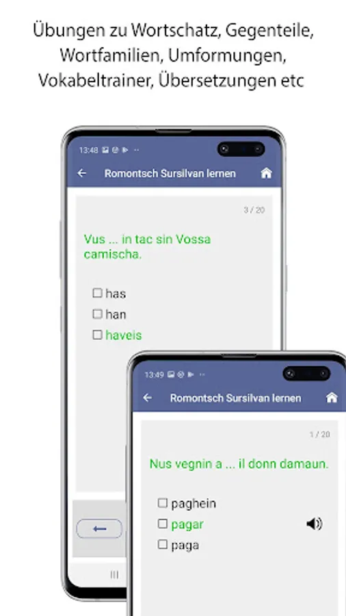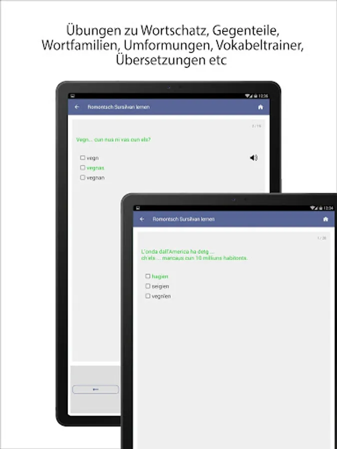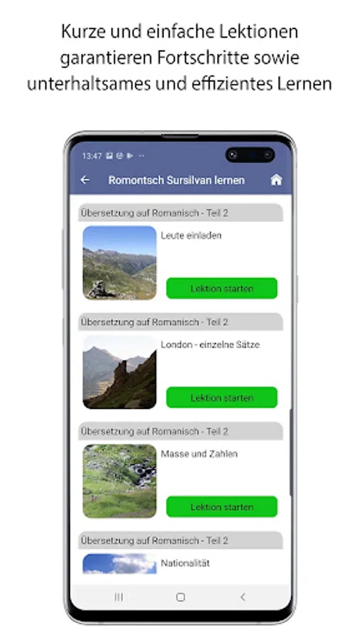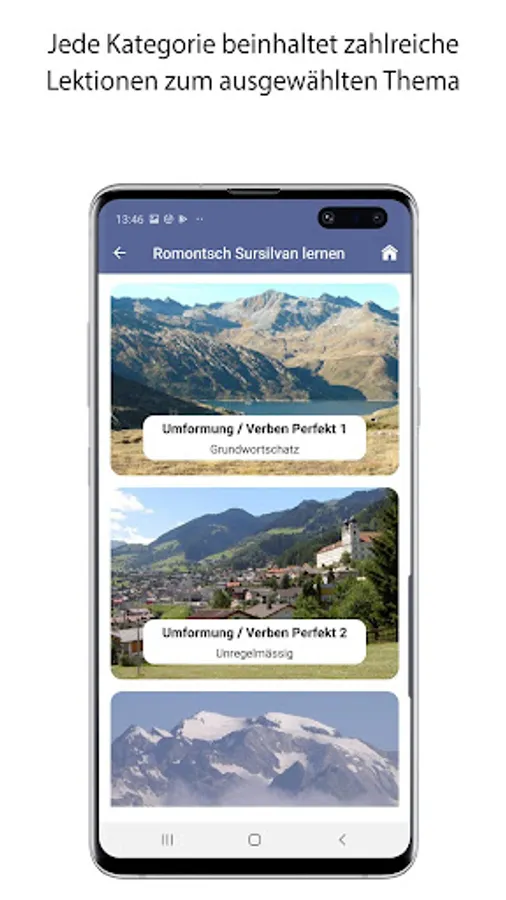 With this app Learn the Romansh language Romontsch Sursilvan.