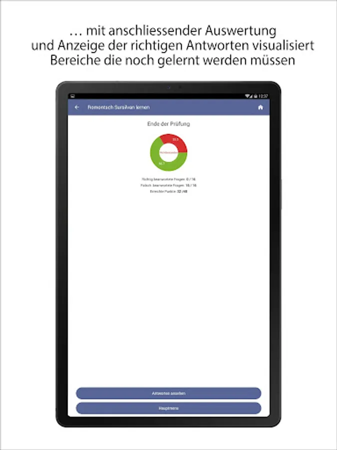 This app is characterized by a neat and clear user interface and is divided into the main areas learning, testing and reference.