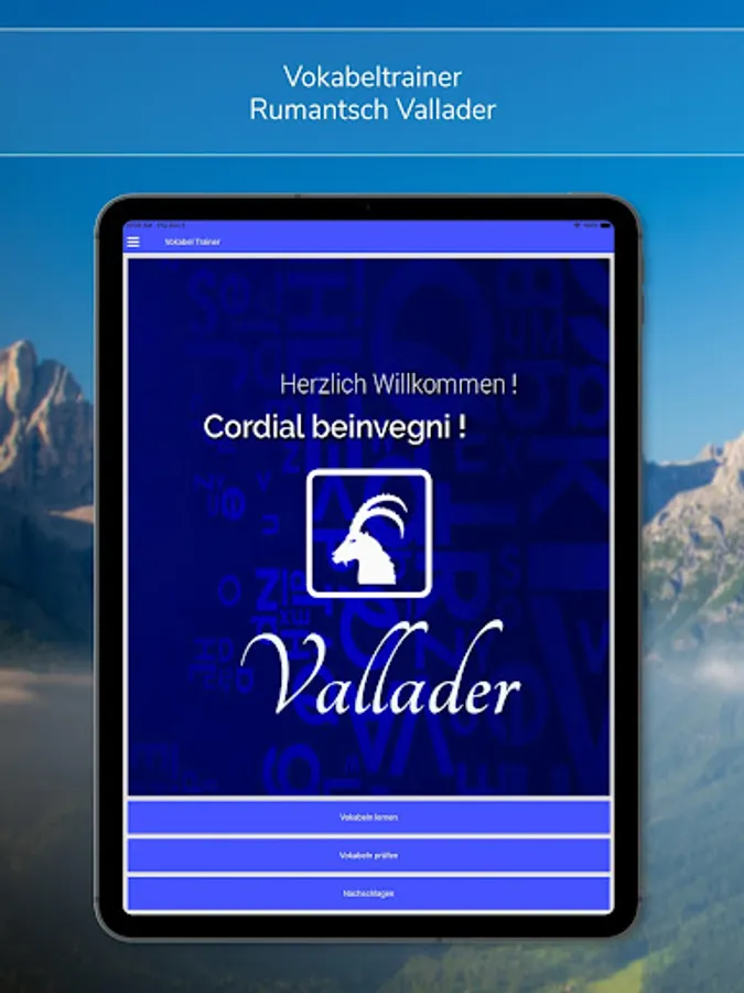 The Vocabulary Builder Romansh Vallader is the first and only vocabulary learning program with which you can learn the basic and advanced vocabulary of the Romansh language Romansh Vallader.
