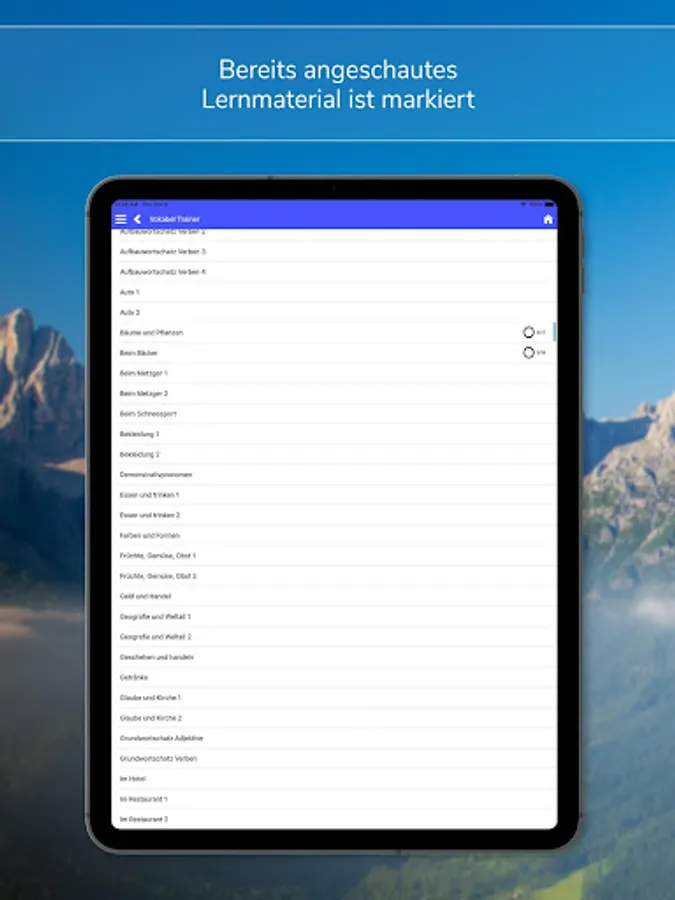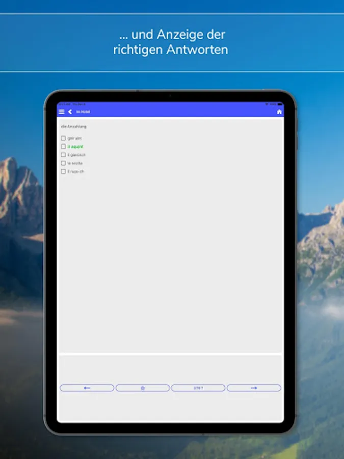 This app is characterized by a neat and clear user interface and is divided into the main areas learning, testing and reference.