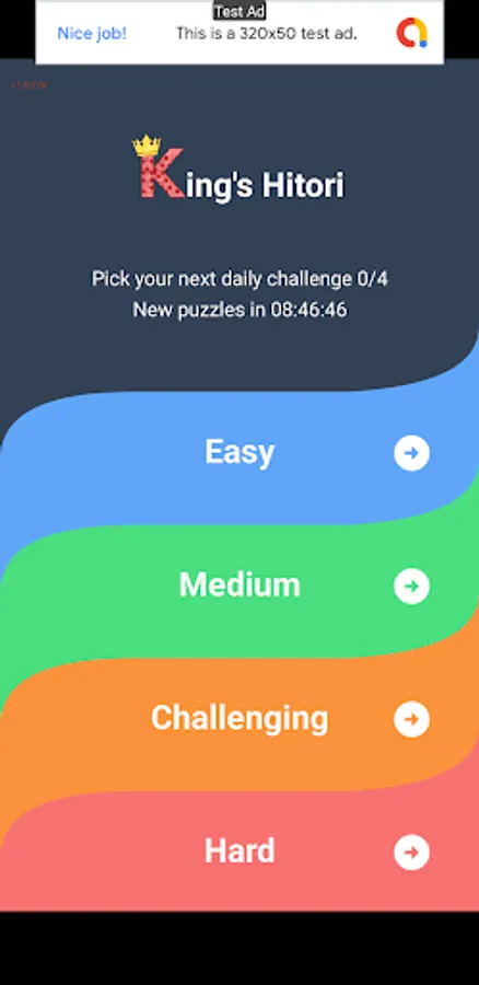 Each day you can pick between 4 difficulties Easy, Medium, Challenging and Hard. Can you complete them all?