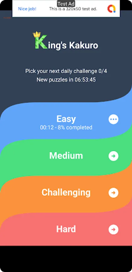 Each day you can pick between 4 difficulties Easy, Medium, Challenging and Hard. Can you complete them all?