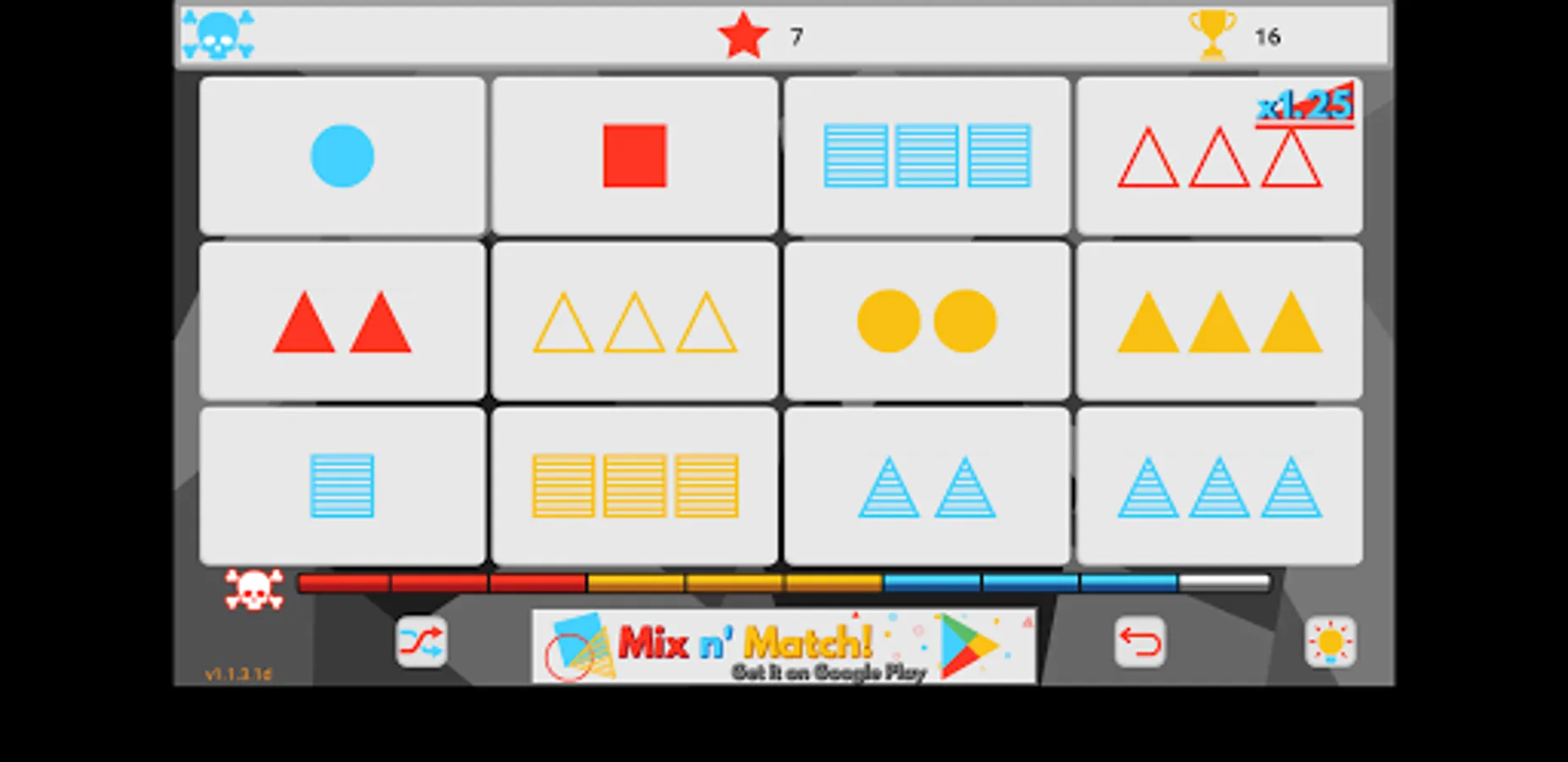 A fun game where you have to Mix 'n Match by finding three cards that form an all identical or all unique combination on each of the four properties (color, shape, pattern and amount).