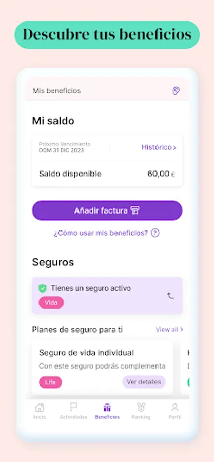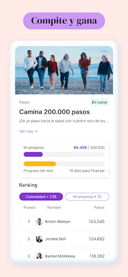 In this app you can choose any wellness benefit you want, so you will always receive what you really need. In addition, we propose physical challenges to encourage teamwork and healthy habits. It's ideal for diverse teams and remote workers, as each employee has a personalized wellness experience.