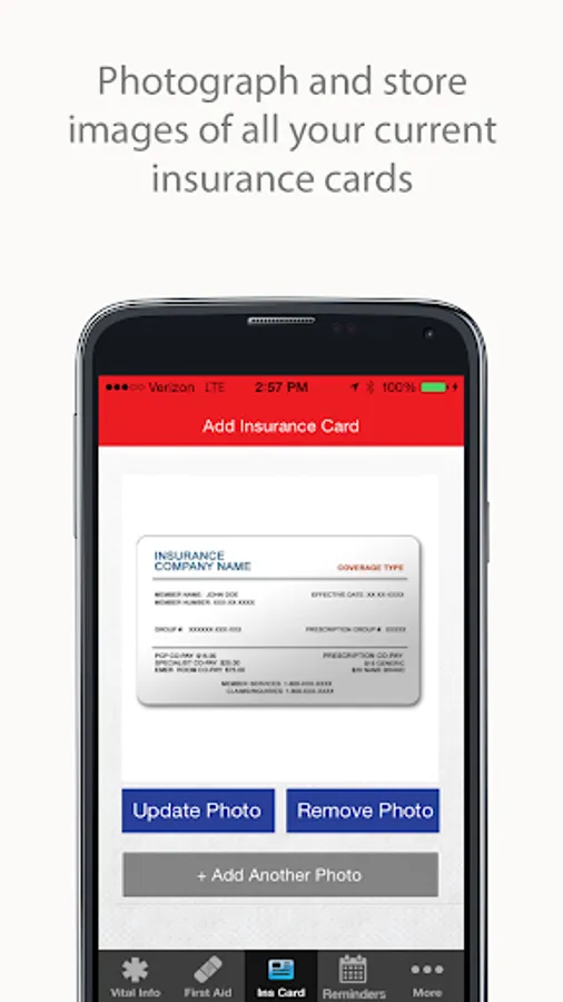 • Attach photos of current insurance cards, stored in one convenient location, for medical staff to quickly access