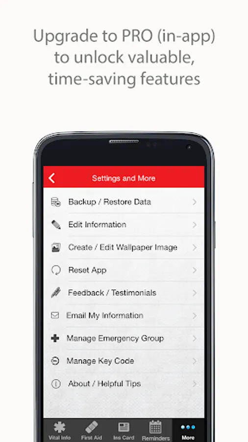 Vital ICE has a customized feature that allows first responders and other organizations to link their organization with app users in the area. A unique, 4-digit key code is provided to them, and if entered either during initial setup, (or later via the 'Manage Key Code' section) will allow for valuable local emergency alerts and other important communications to be sent from the participating organization via push notifications. No one will be able to access your information, unless they are actually viewing the app on your device, or in the event you have activated the 'Email My Information' feature and listed their email address as a recipient. The Email My Information feature uses 128-bit SSL encryption when sending your information to any recipient, all behind Amazon's firewalls, so rest assured your information is safe!