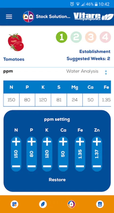 Vitare™ Hydroponics program is based on the principle of nutritive solutions to keep nutrients at their best physical-chemical properties for the correct plant’s intake and conversion with the least energy waste. The concept consists in providing a nutrition program with the specific required nutrient balance, usable with all kind of substrates. As a result, all the calibration and calculation of the nutrients is done in ppm (parts per million), their elemental form, which the plant recognizes as its edible ionic forms, rather than working with fertilizer units that can be very misleading as not all reported units are readily available to the plant as food.