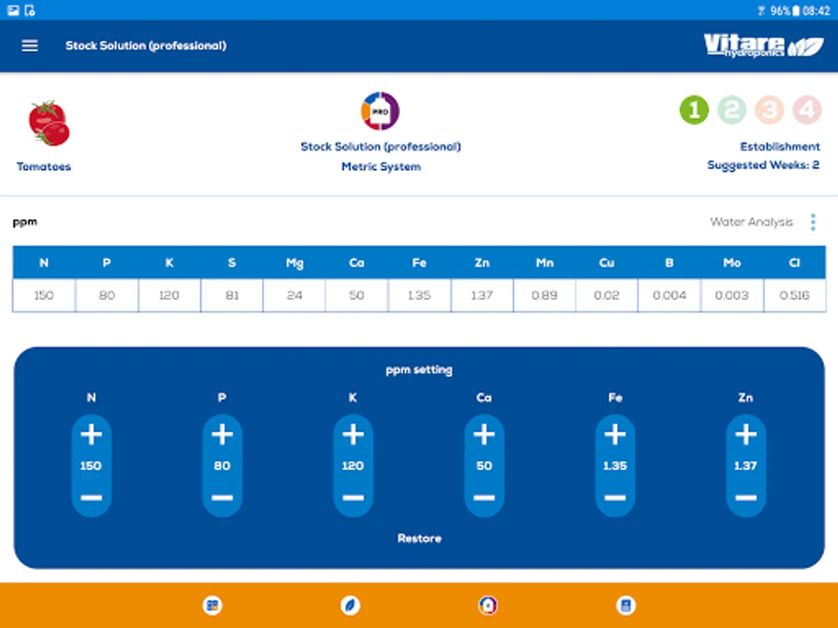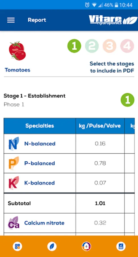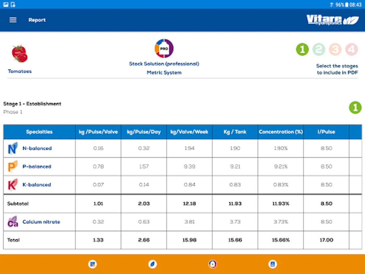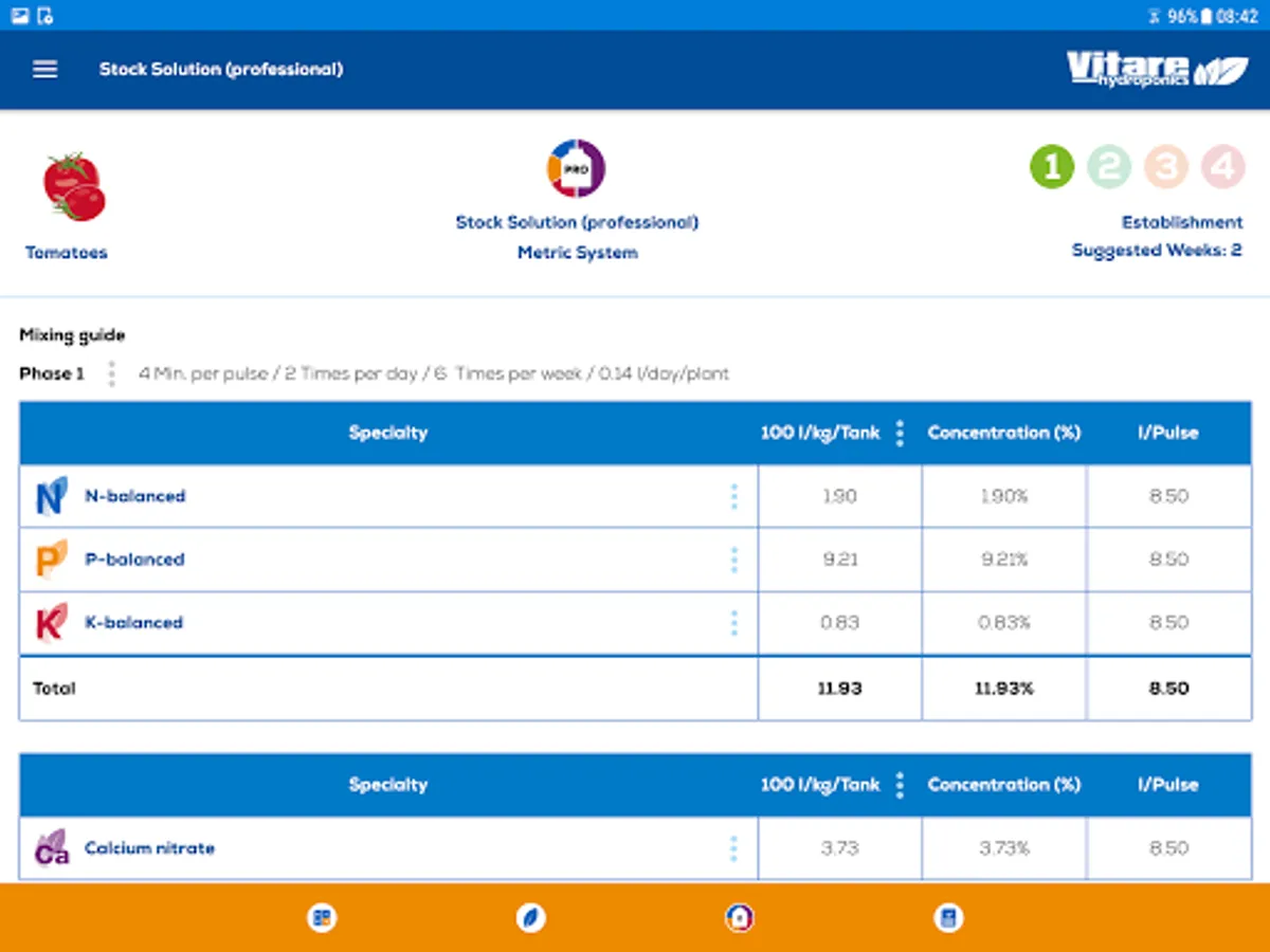 Under this principle, using the 3 Vitare™ Hydroponics master formulas (and calcium nitrate) and Vitare™ Calc, a grower can calculate mix ratios and feeding applications rates to create endless, truly versatile, homogeneous and stable nutritive solutions.