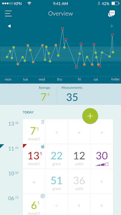 Blood glucose levels can be extracted automatically from medical devices using Bluetooth. Other data can be added manually. The DiaCare app provides clean insight in this data through graphs and overviews. DiaCare provides you with this insight anytime, anywhere!