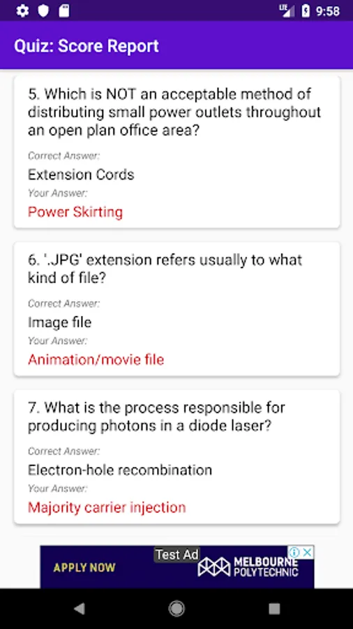 Features of this quiz app: