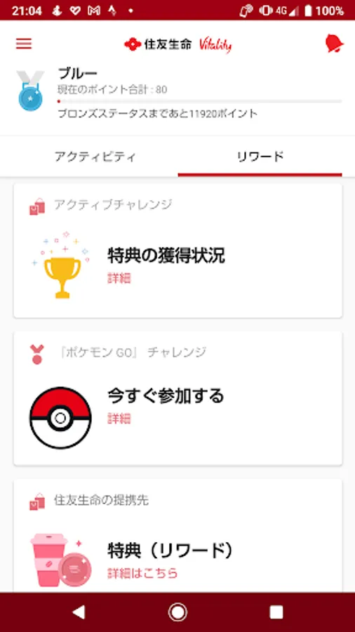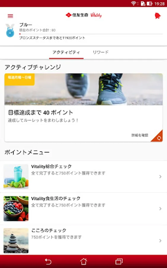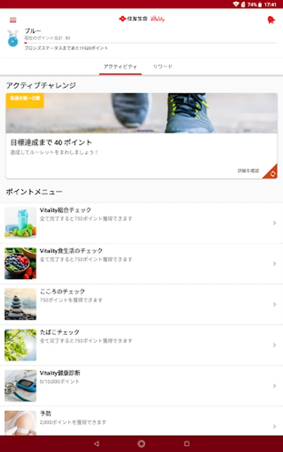 You can earn points by efforts for the understanding and improvement of health conditions. In addition, you can use a variety of benefits (reward) to support health promotion.