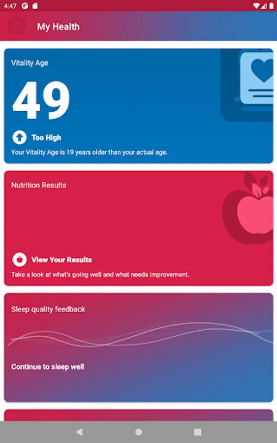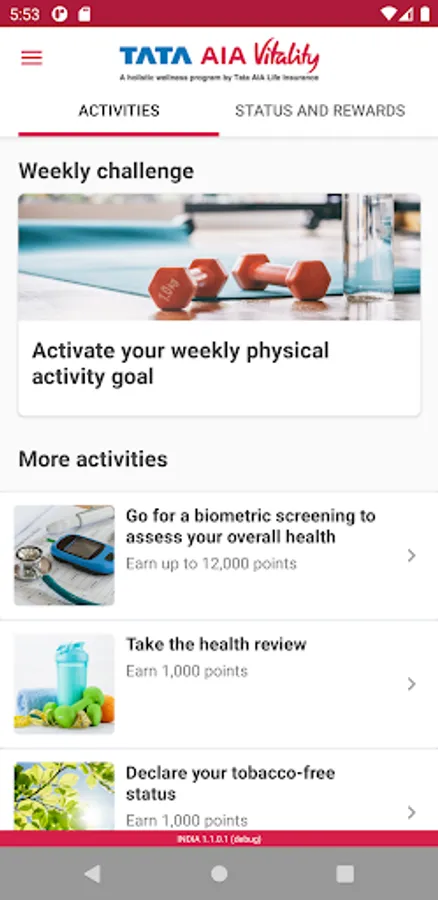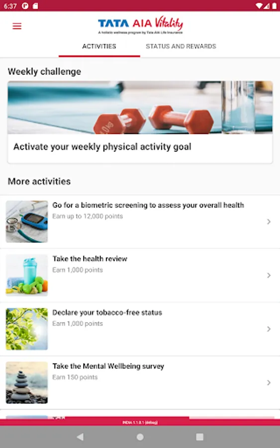 The Tata AIA Vitality App is your partner in your journey towards holistic wellbeing. It first helps you learn about your health through the various assessments and health checks and then helps you improve the same via assigning you dynamic and personalised physical activity challenges. Earn points for all the activities you do and enjoy benefits like premium discount.