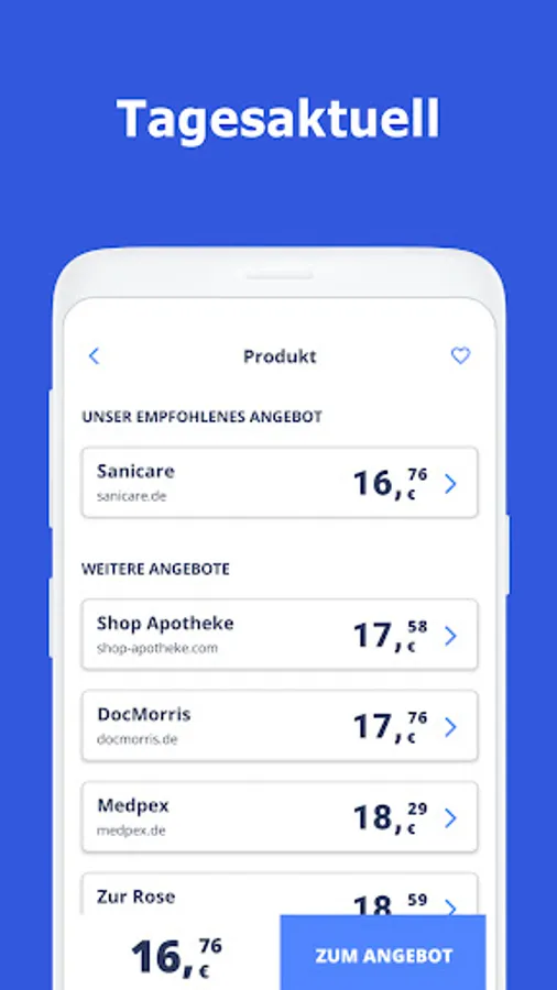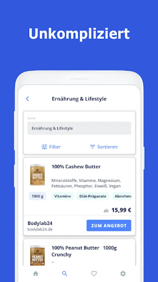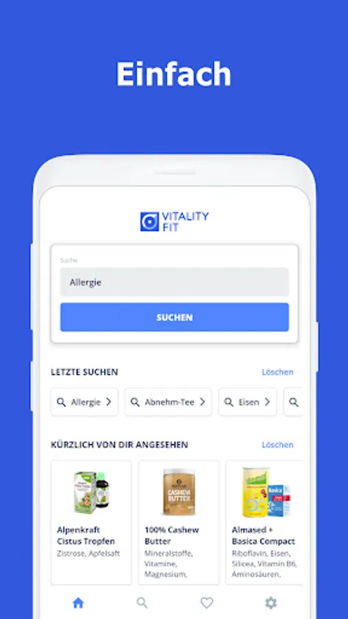 Simply enter active ingredients, symptoms, diseases or forms of therapy and Vitalityfit will select the right products for you! The offers are updated daily. In this way, users receive up-to-date information about the costs and availability of products in the pharmacy or in the online shop.