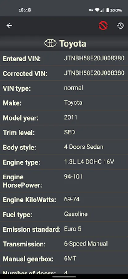 Our app's powerful VIN scanner feature allows you to quickly and accurately scan the VIN code of a car. Once scanned, the app instantly retrieves essential information such as the car's origin, make, model year, engine type, fuel type, transmission, and more. This data provides you with a comprehensive overview of the vehicle's specifications, helping you make informed decisions.
