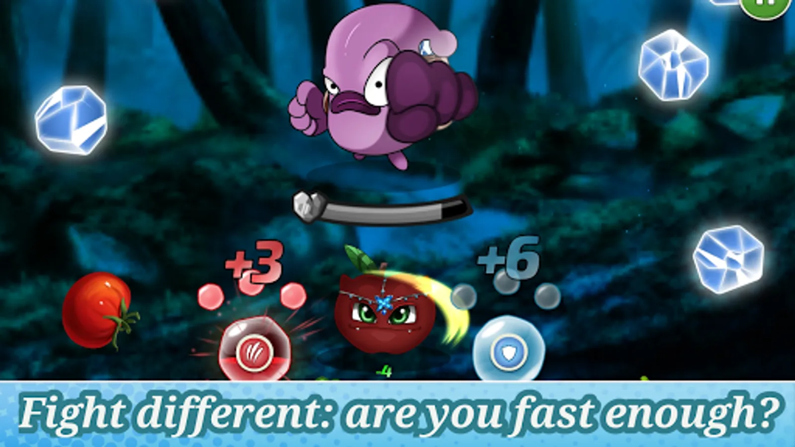 🍇 Monster fight mechanic: Our game is unique compared to other creature capture games. You don’t fight to catch your companions, but you fight their enemies, the Noxomonster. Tap on the crystals to reveal the item then tap to collect fruit and vegetables to attack, defend, restore energy, and activate special powers. The pot monster will teach you how to do it in the game, so don’t worry! Just install and try it out for yourself. If your health reaches zero before you defeat the Noxomonster, you will die and lose the fight. That’s why you need to act and tap the right item as quickly as possible.