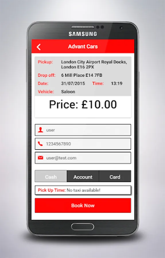 Book a taxi from your current location in three simple taps of your Phone.