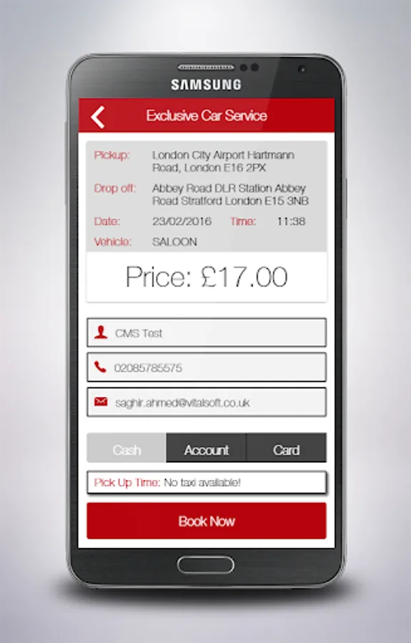 Book a taxi from your current location in three simple taps of your Phone.