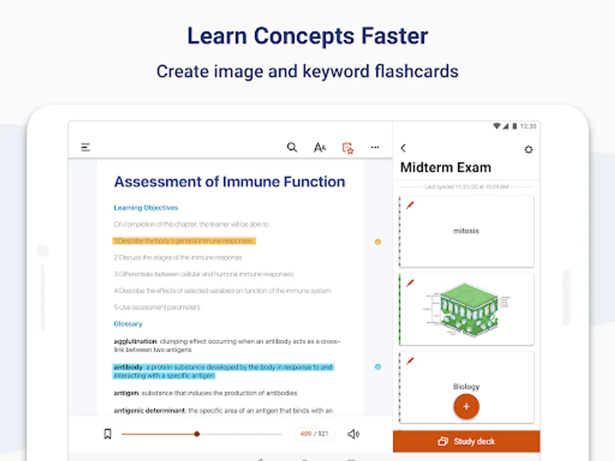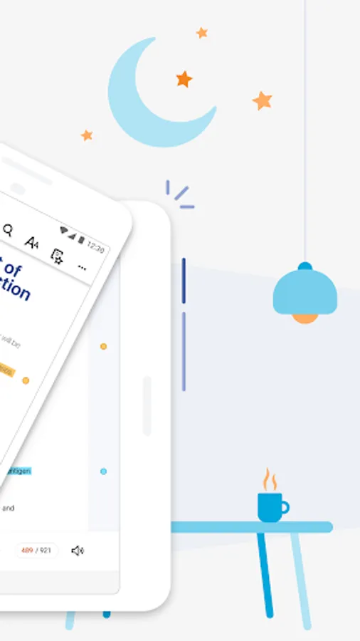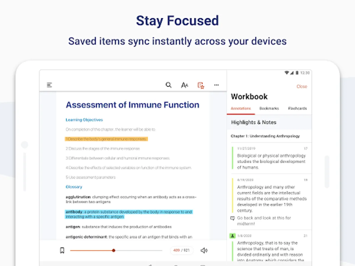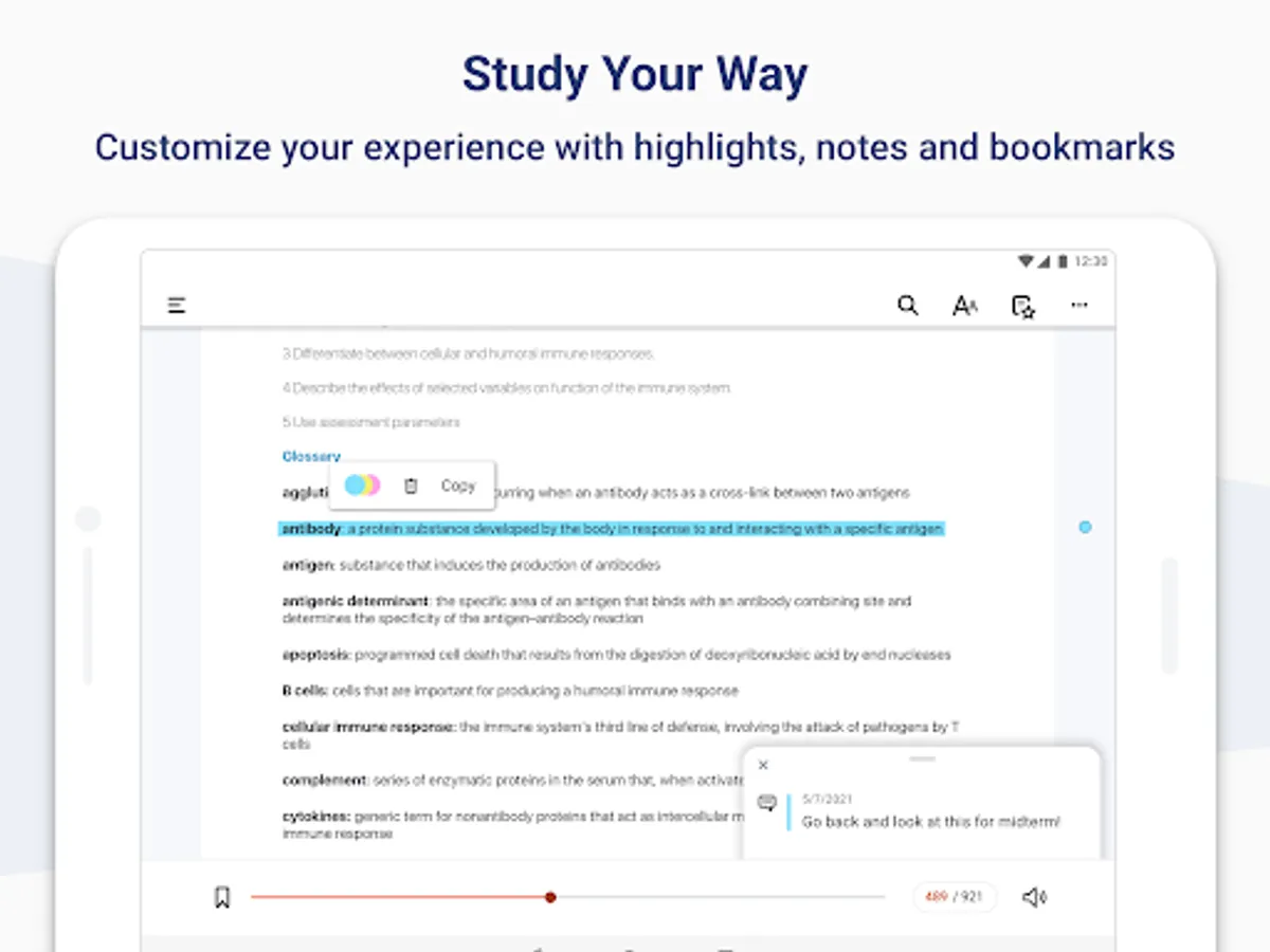 • Select text to create notes or highlights from your mobile device.