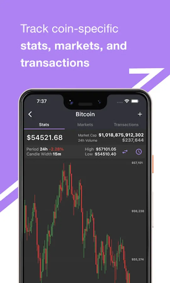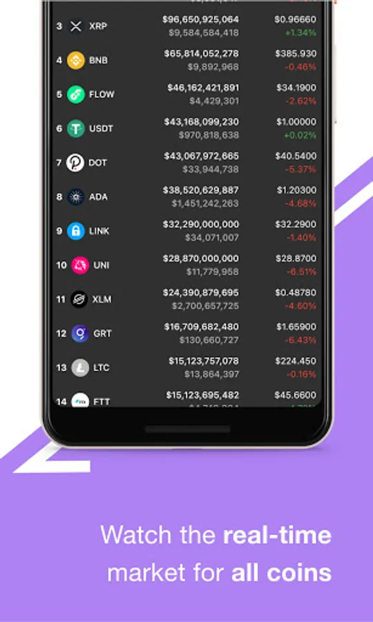 Tap on any coin in the Crypto Tracker to view detailed market data