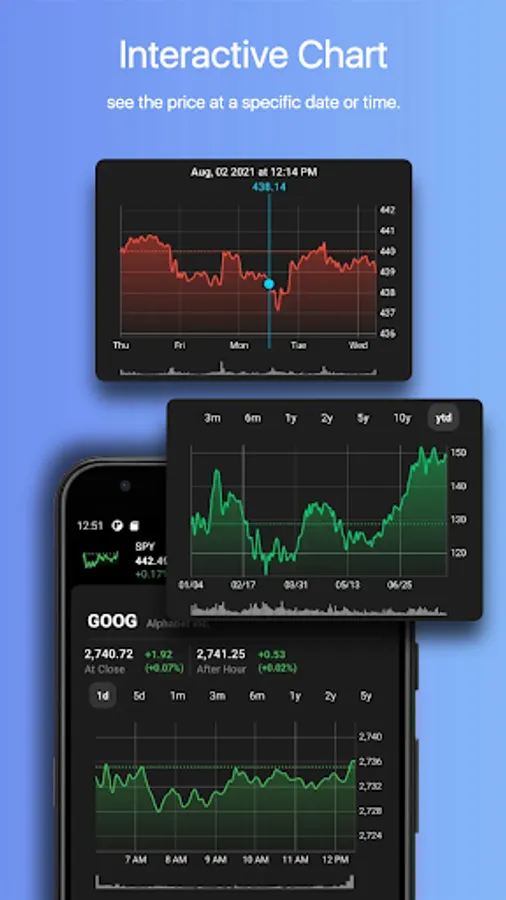 • Real-Time Quotes: Stay up-to-date with real-time quotes that show price changes, percentage, and market capitalization. Tap any quote to see an interactive chart and key details in real-time.
