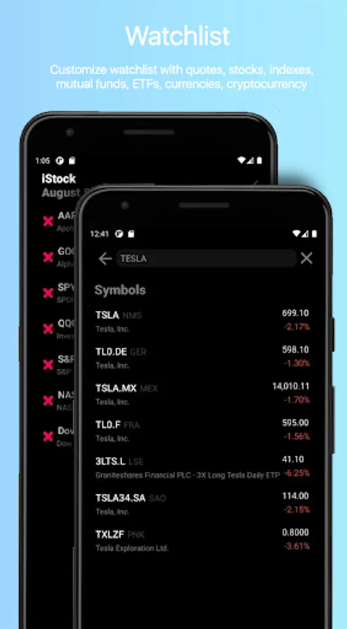 • Customize your Watchlist: Tailor your Watchlist to your unique investment strategy by adding quotes, stocks, indexes, mutual funds, ETFs, currencies, and more.