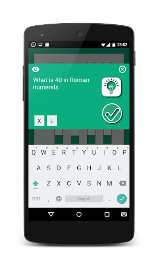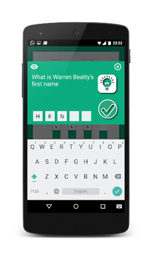 With this game you can challenge your knowledge and erudition, and if you need help just click on the lamp image next to the question.