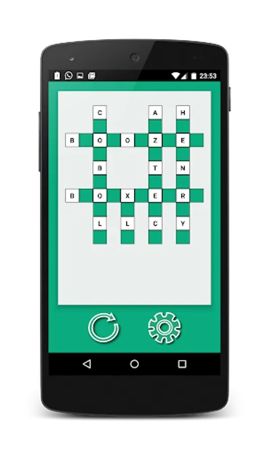 To start a crossword puzzle click on the circular arrow and to change the language - on the gear. You see, the app is absolutely simple and has nothing superfluous. It's impossible to get confused!