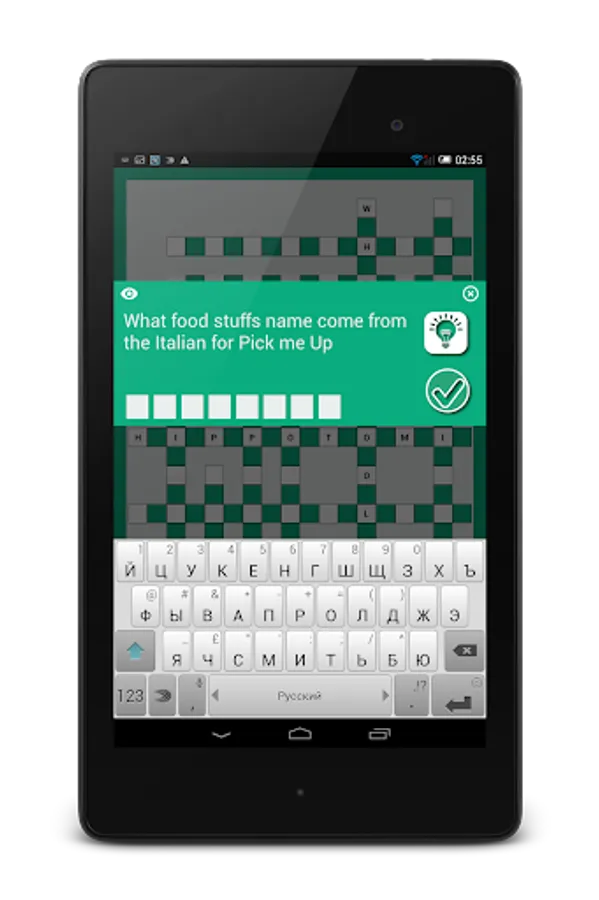 With the use of this unique app it's possible to generate more than two million crosswords in three languages. Try to complete them all :) You simply can't get bored with this game. You will be able to learn languages and play crossword puzzles in English, Spanish and Russian.